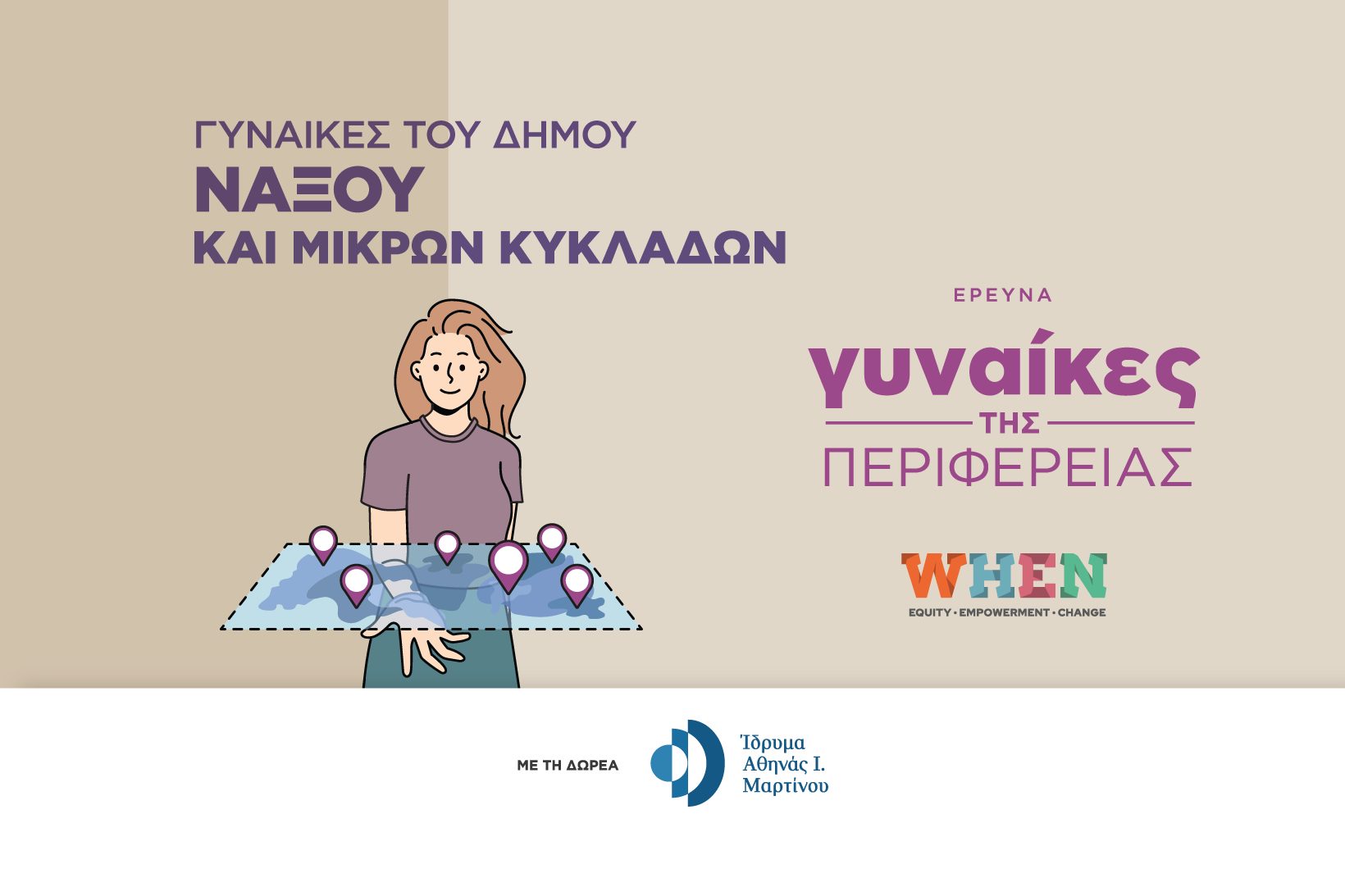 Στο πλαίσιο της μεγάλης έρευνας πεδίου του WΗΕΝ για τις γυναίκες της περιφέρειας, η οποία έχει σκοπό να εξετάσει τις ιδιαίτερες ανάγκες, τις προκλήσεις, τα εμπόδια αλλά και τις ευκαιρίες που καλούνται να διαχειριστούν στη διάρκεια της εκπαιδευτικής και επαγγελματικής τους πορείας, σχεδιάστηκαν και υλοποιήθηκαν από το WHEN 4 δίωρα εργαστήρια στο Πολιτιστικό Κέντρο Φιλωτίου, στο Πολιτιστικό Κέντρο Απειράνθου, στο Πνευματικό κέντρο Κορωνίδας και στην Αίθουσα της Περιφερειακής Ενότητας Νάξου.