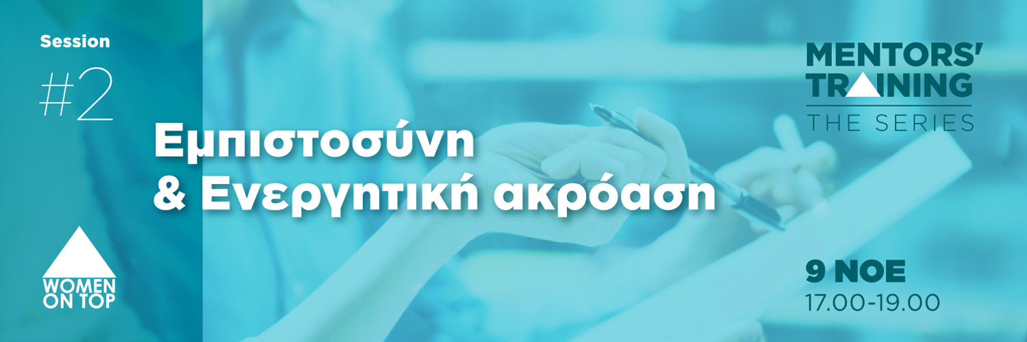 Το δεύτερο webinar του κύκλου εκπαίδευσης μεντόρων αφορά στις βασικές αρχές της εμπιστοσύνης και της ενεργητικής ακρόασης. Μαζί θα εξερευνήσουμε τον ρόλο που παίζει η εμπιστοσύνη στην αποτελεσματικότητα του mentoring, θα προτείνουμε εργαλεία και πρακτικές και θα ανταλλάξουμε εμπειρίες και tips για περισσότερη ενεργητική ακρόαση στις συνεργασίες μας. Φυσικά θα δοθεί χρόνος για όλες τις ερωτήσεις που μπορεί να έχεις για προηγούμενες ή μελλοντικές σου εμπειρίες, με σκοπό να αποκτήσεις πολύτιμες δεξιότητες και να εμπλουτίσεις και τη δική σου επαγγελματική πορεία.