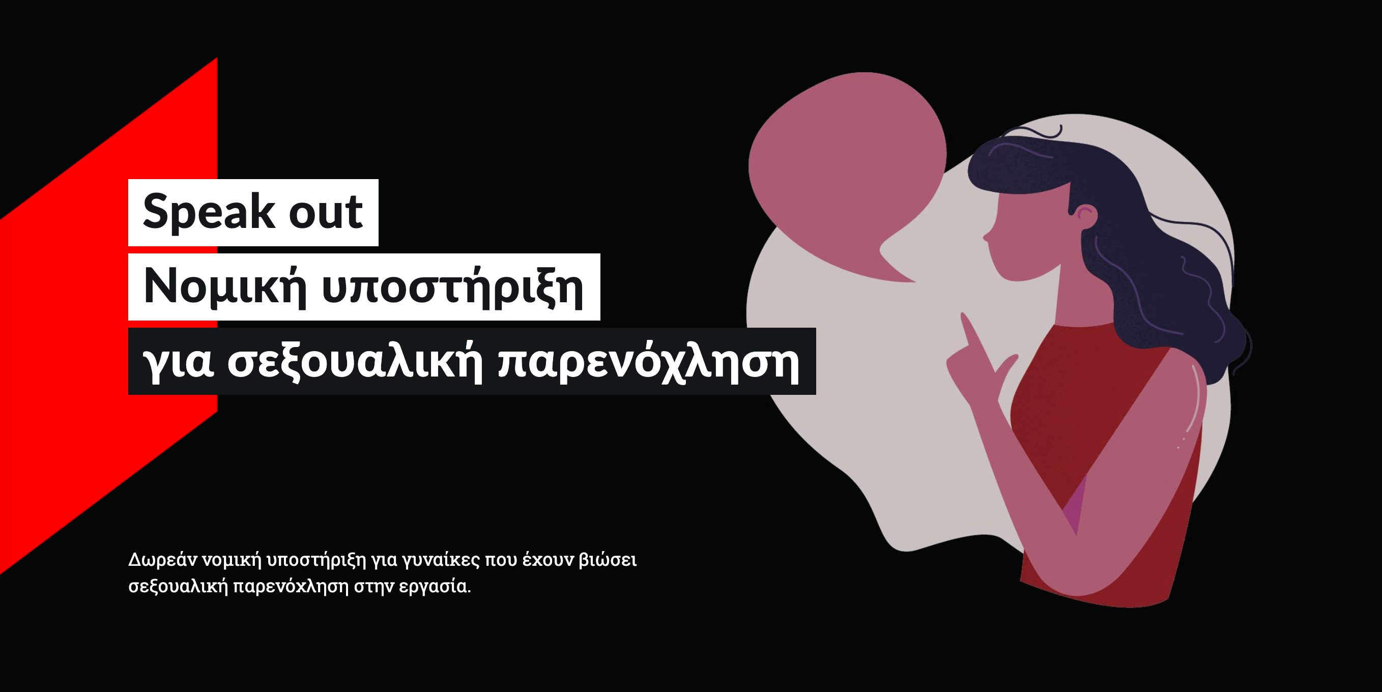 Αν έχεις υποστεί σεξουαλική παρενόχληση στο χώρο της εργασίας σου, μπορείς να απευθυνθείς στην υπηρεσία δωρεάν νομικής υποστήριξης #SpeakOut που δημιούργησε η Action Aid Hellas και το Women On Top. Μπορείς να διαβάσεις περισσότερα και να ζητήσεις ανώνυμα νομική συμβουλευτική εδώ.